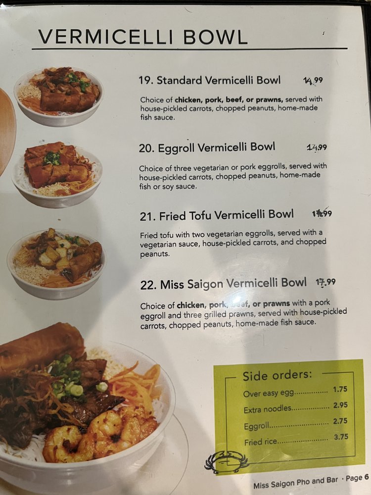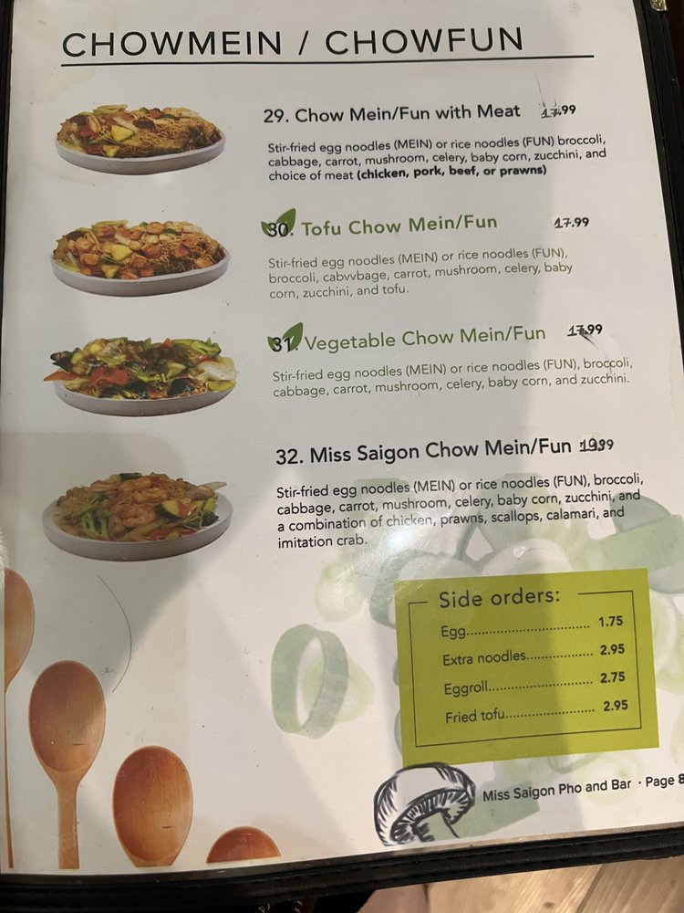 Miss Saigon Pho & Bar Menu